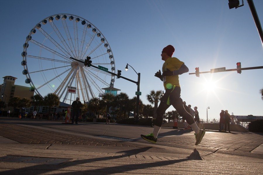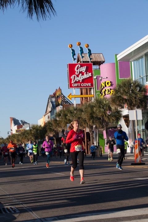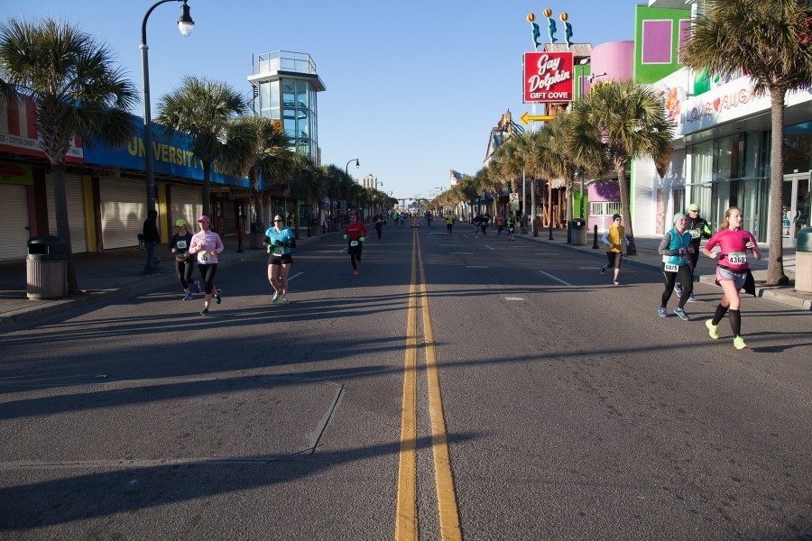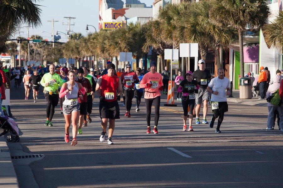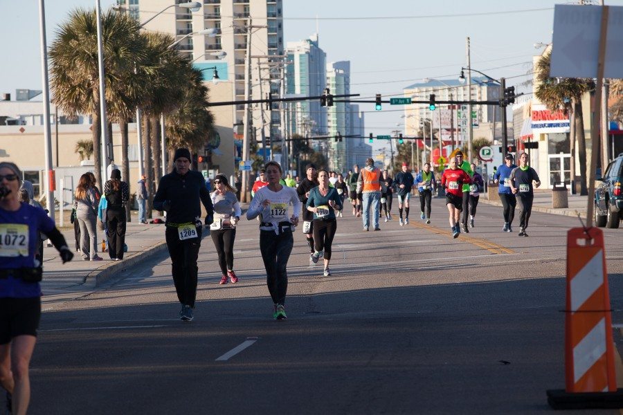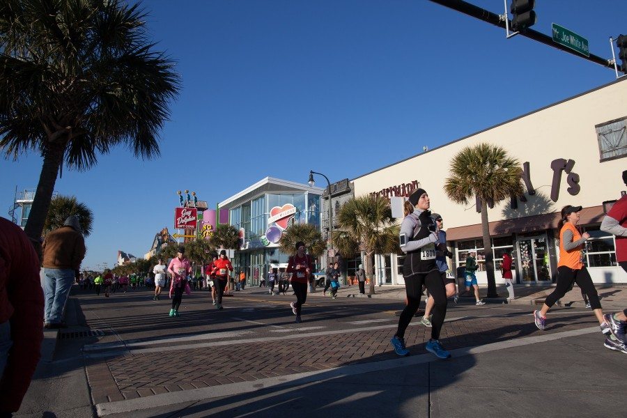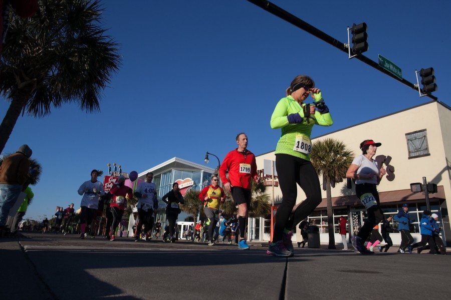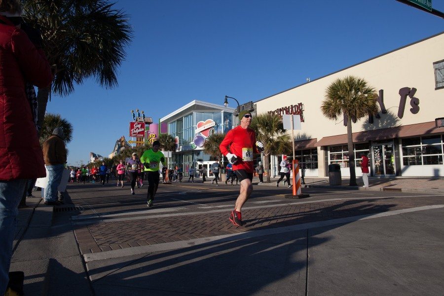 Runners strut their stuff in the 18th annual MyrtleBeach.com Myrtle Beach Marathon on Valentine’s Day 2015.