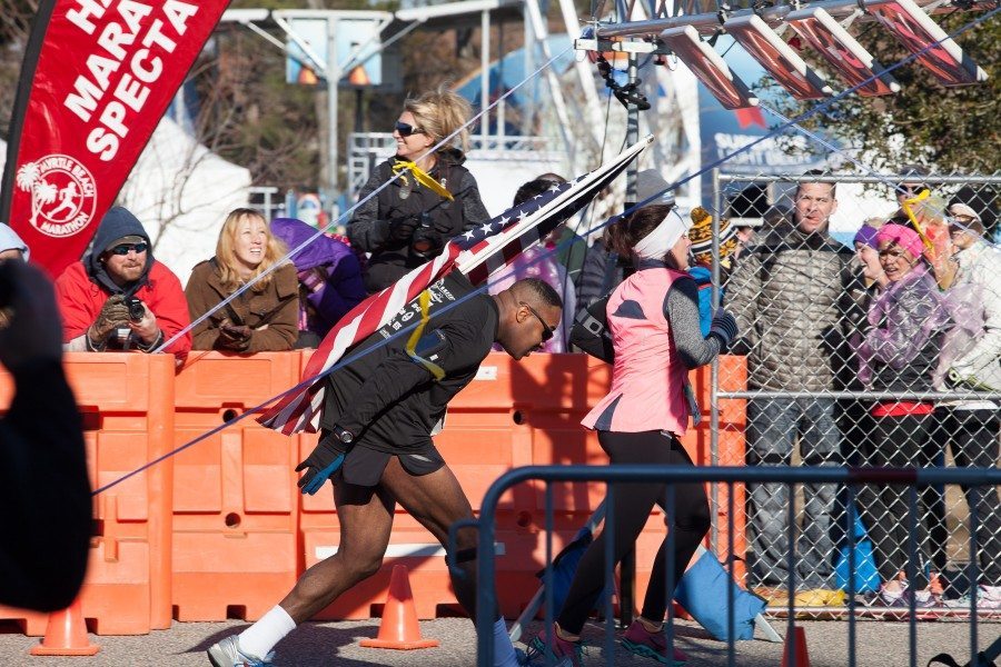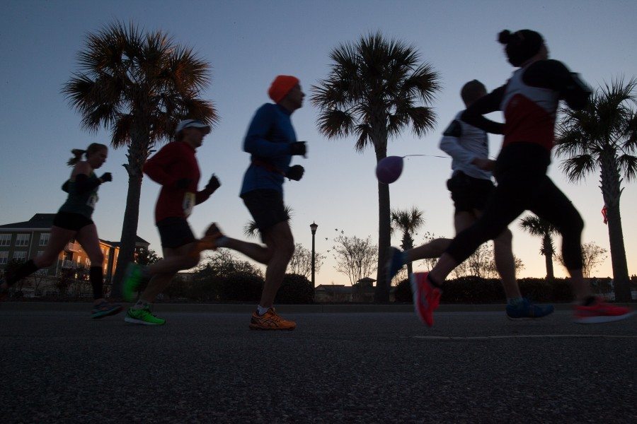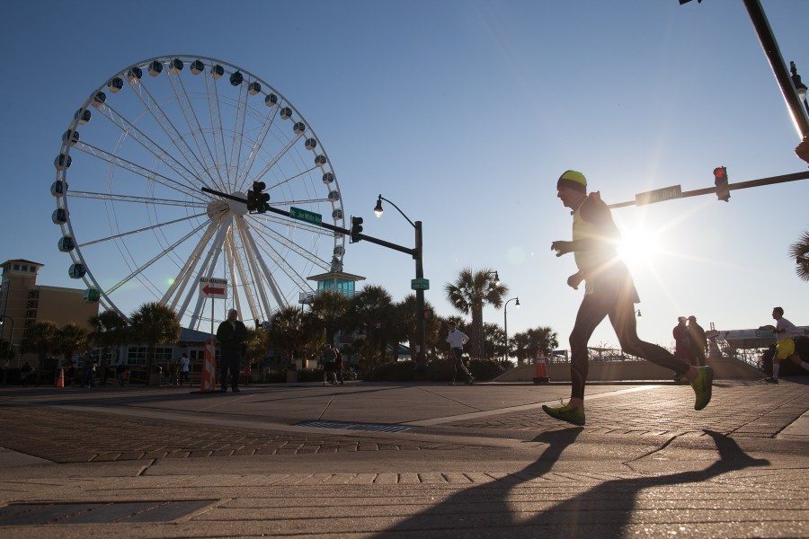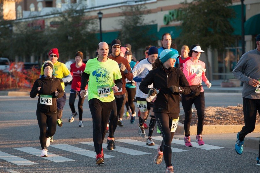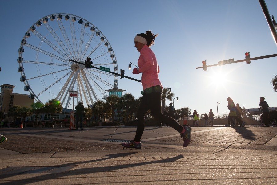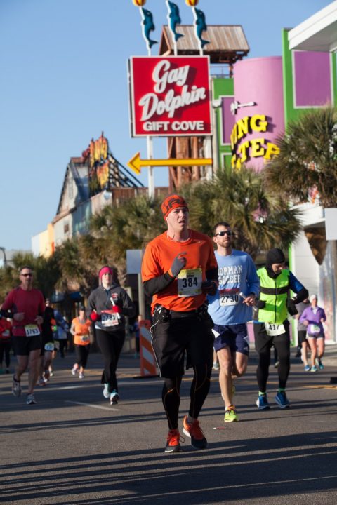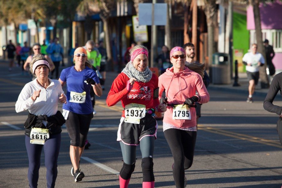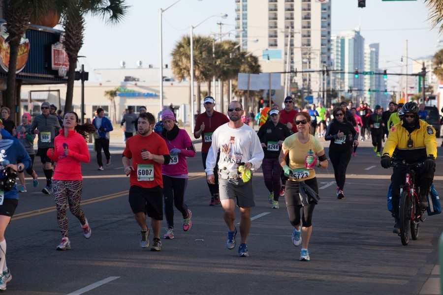 Runners strut their stuff in the 18th annual MyrtleBeach.com Myrtle Beach Marathon on Valentine’s Day 2015.