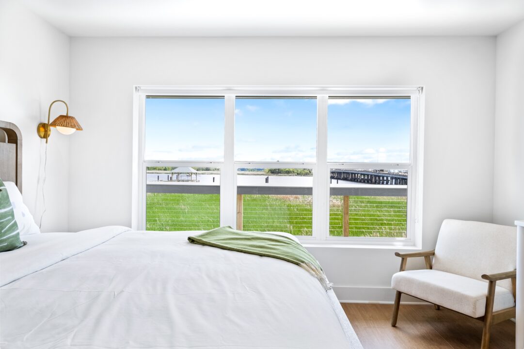 Guests can also enjoy a refreshing outdoor pool, a custom bar and gathering space, and a private dock. From slow, coffee-filled mornings to sunset cocktails by the water, every moment here feels like a getaway you’ll never forget.